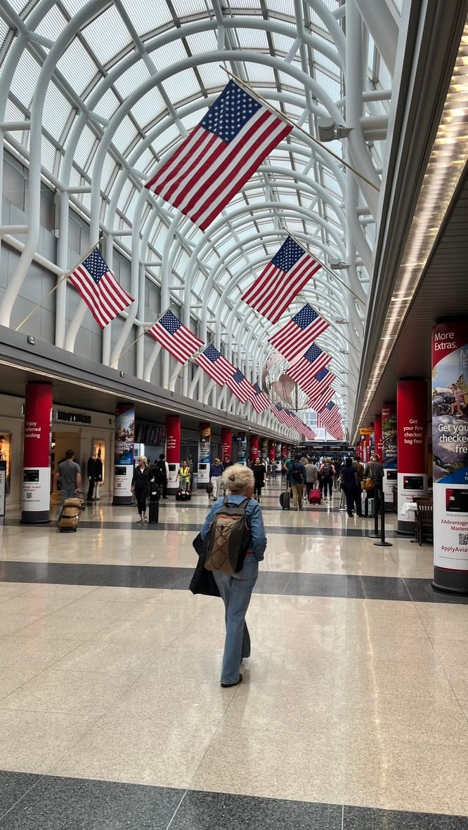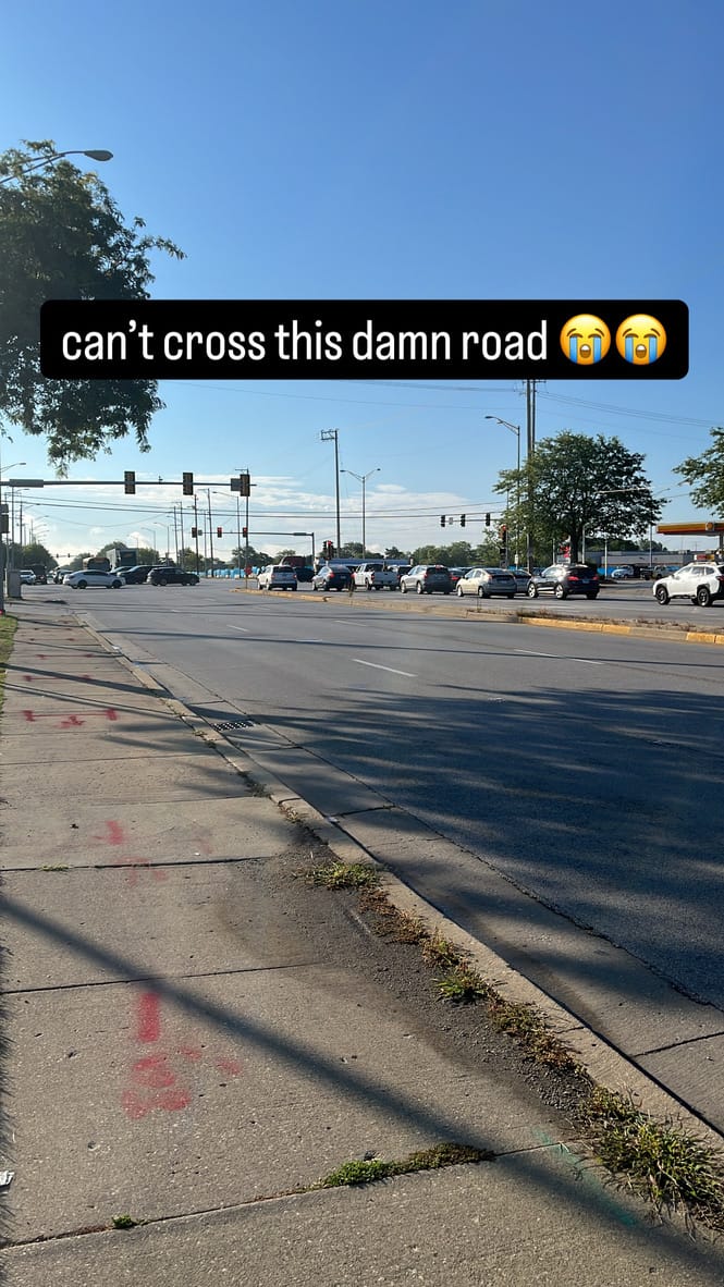 Anyway, I was finally in Chicago. No more pissing around, my brain was in action mode ("locked in", as the kids say). Step 1 was to take the Metro, and then a bus, to my hotel. This was the opposite of my flight - emotionally very cool, but practically unpleasant. I couldn't figure out how to use my UK card on the metro ticketing machine, and then navigating two heavy suitcases through a small turnstile was a deeply frustrating experience. I also had a somewhat-irrational fear about being mugged at gunpoint in broad daylight in the bus station, as it was in a slightly dingy-looking area. With that said, it wasn't all bad: the metro trains and stations run through the central reservation of the highways, which is very cool and novel (but apparently actually quite bad design).